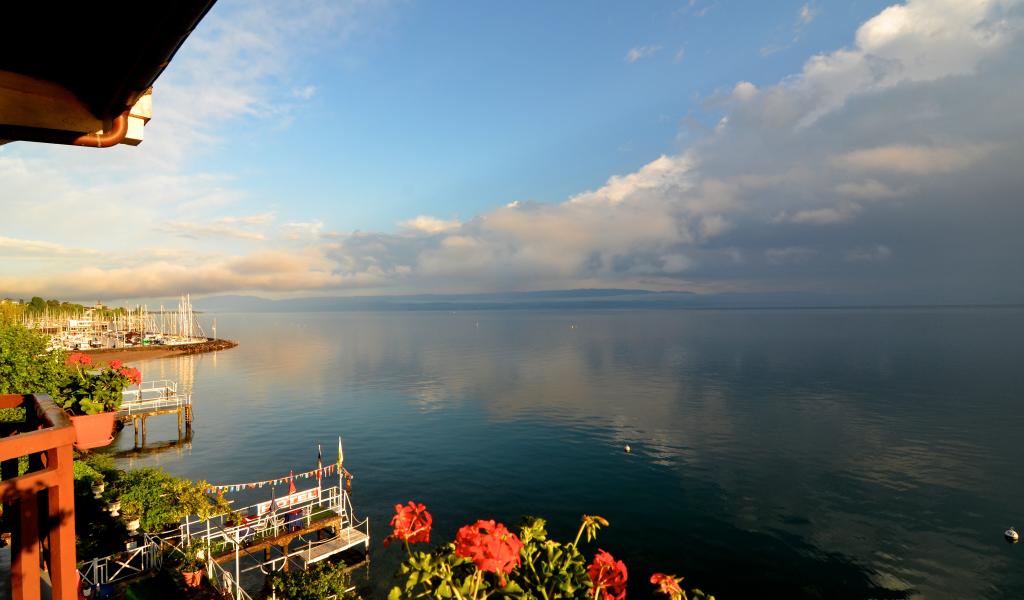 Обои Озеро на курорте Эвиан, Франция
