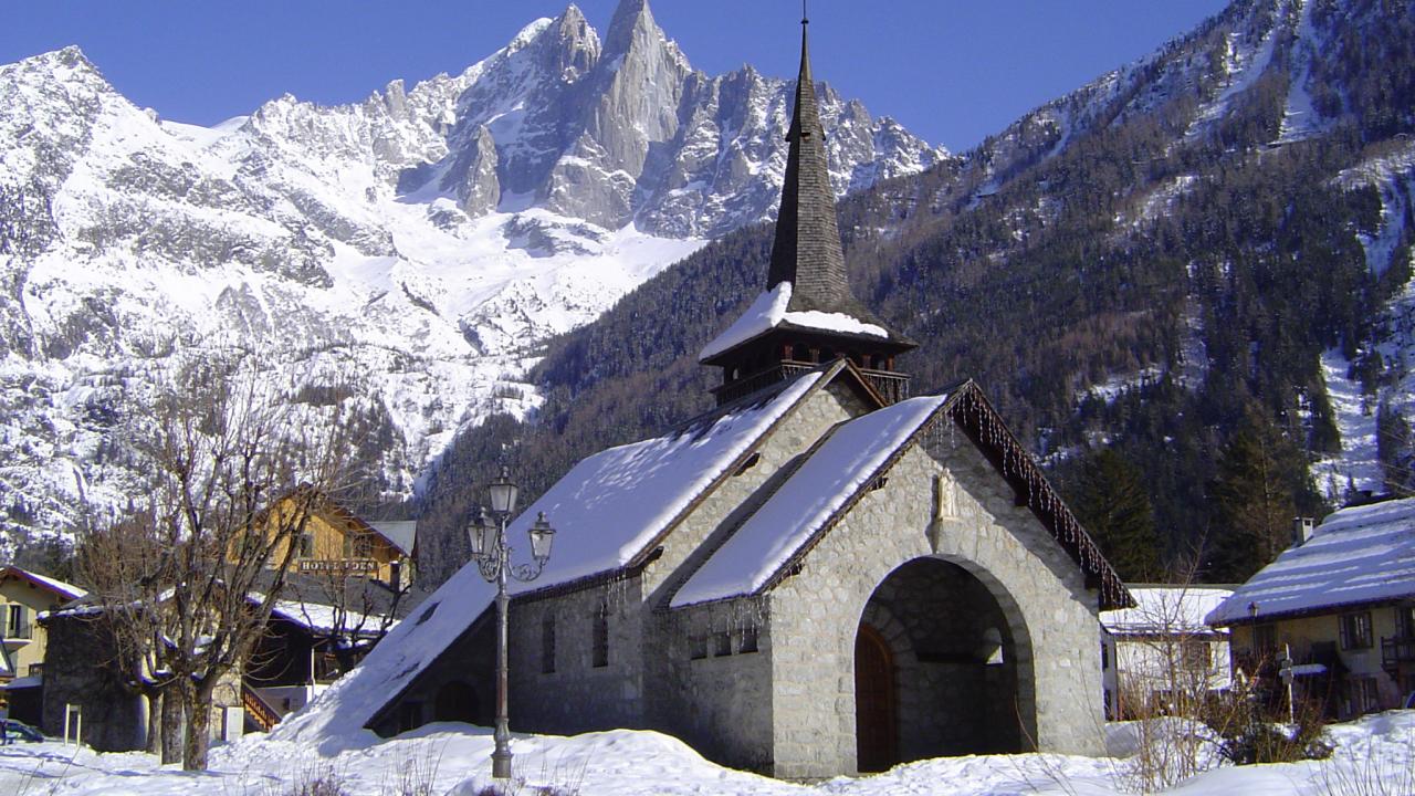 Обои Церковь на курорте Шамони, Франция