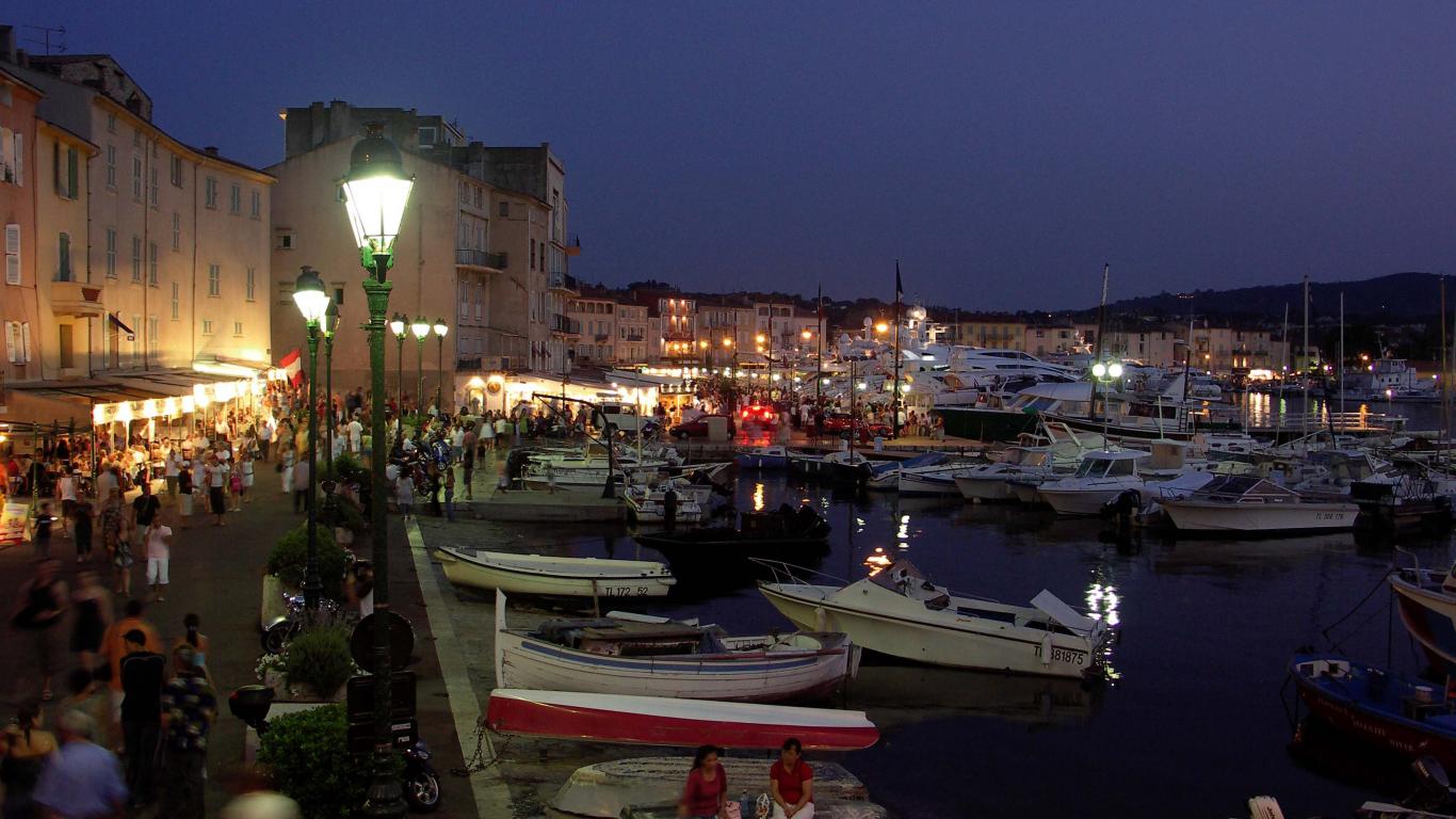 Обои Ночные огни на курорте Сен-Тропе, Франция