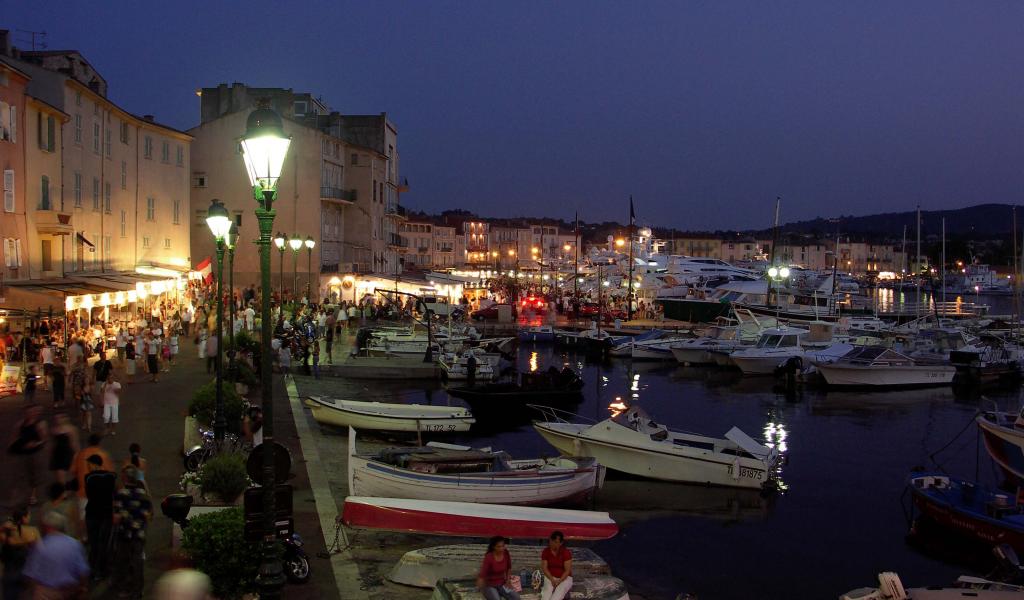 Обои Ночные огни на курорте Сен-Тропе, Франция