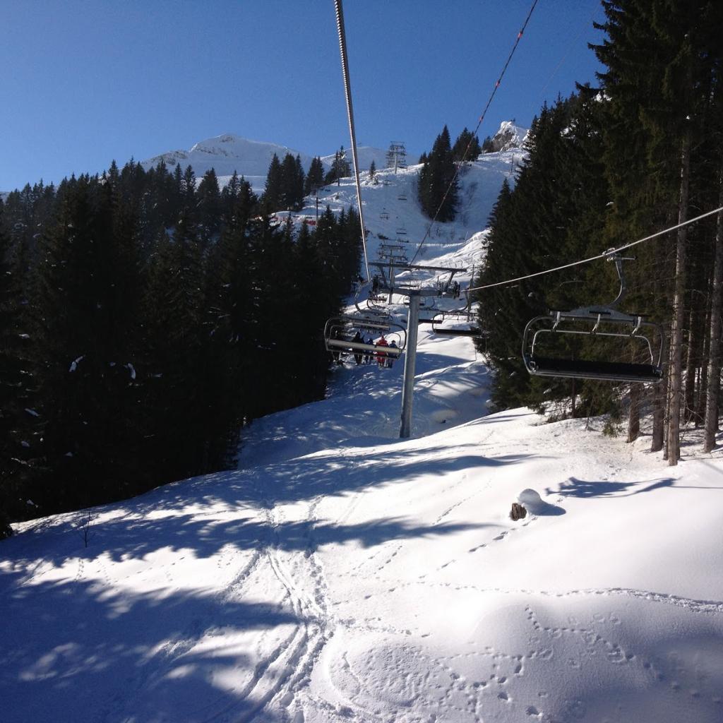 Обои Подъемник среди сосен на горнолыжном курорте Самоен, Франция