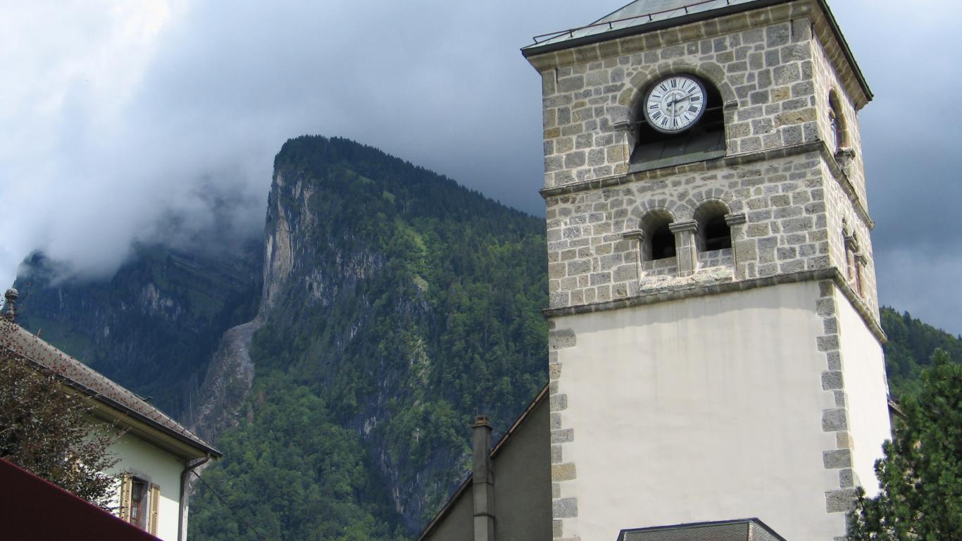 Обои Башня с часами на горнолыжном курорте Самоен, Франция