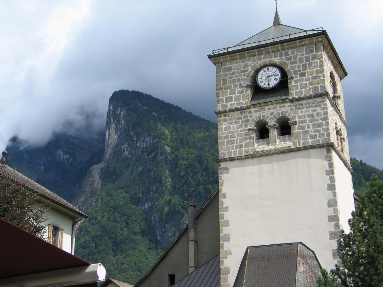 Обои Башня с часами на горнолыжном курорте Самоен, Франция