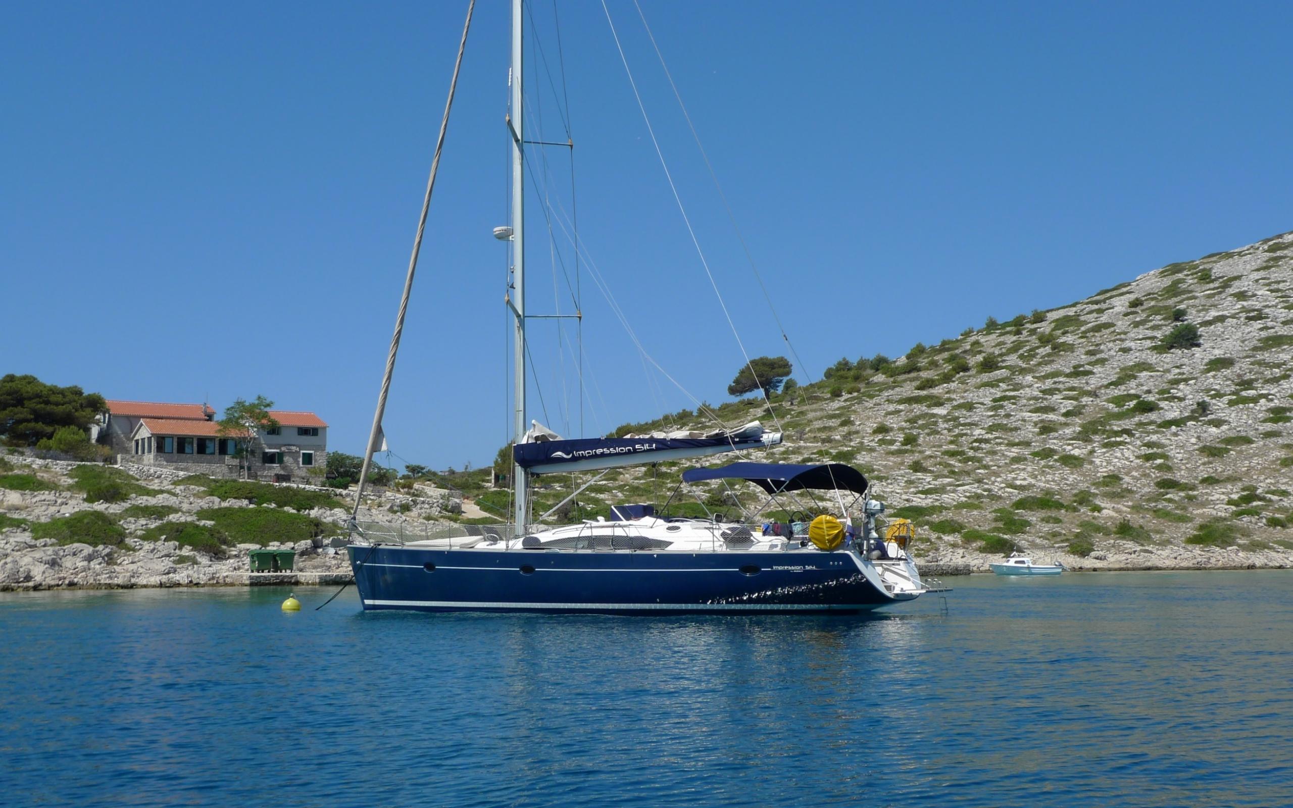 Обои Яхта у берега на курорте Порт Де Фрежюс, Франция