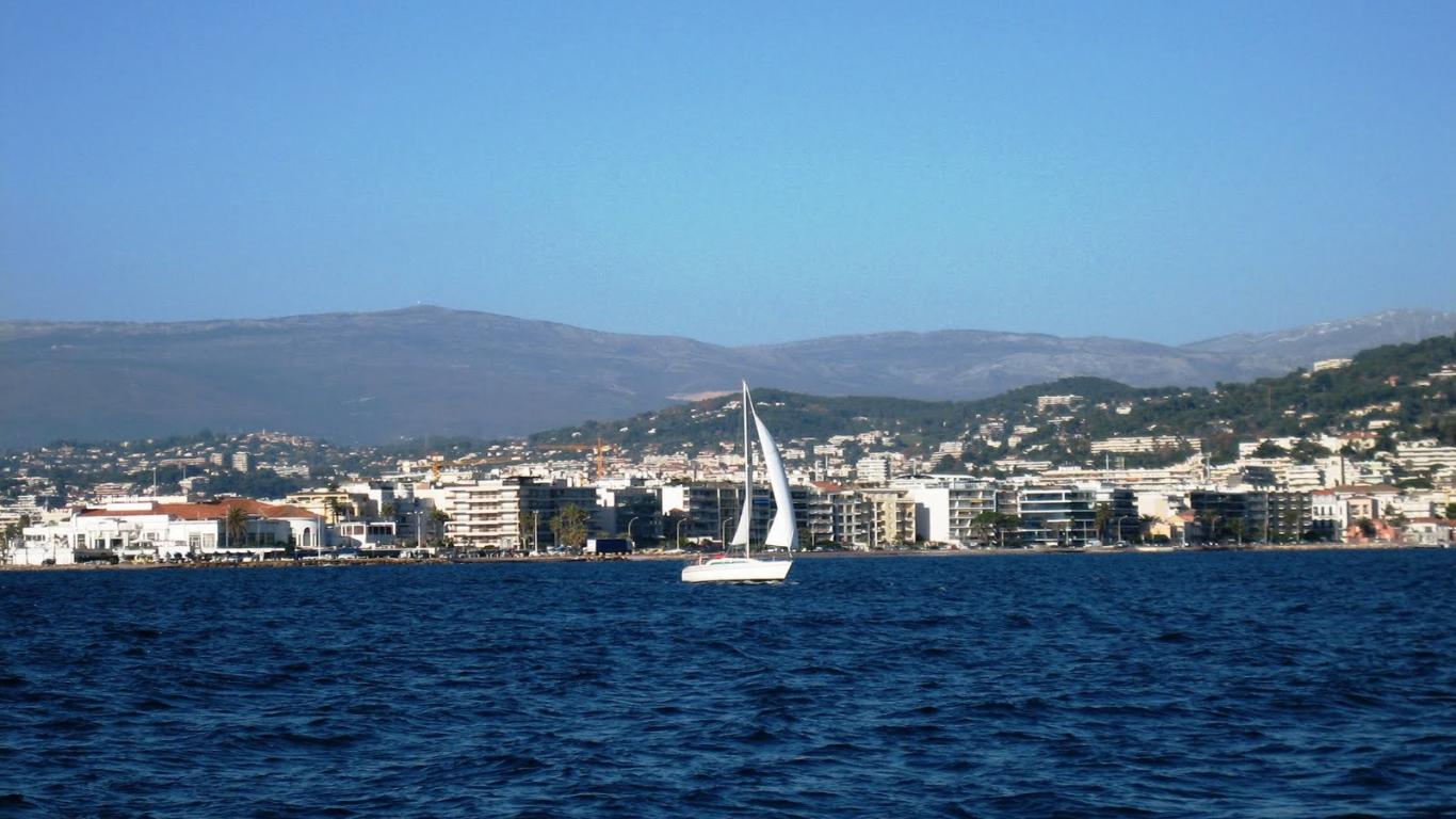 Обои Яхта на фоне города на курорте Порт Де Фрежюс, Франция