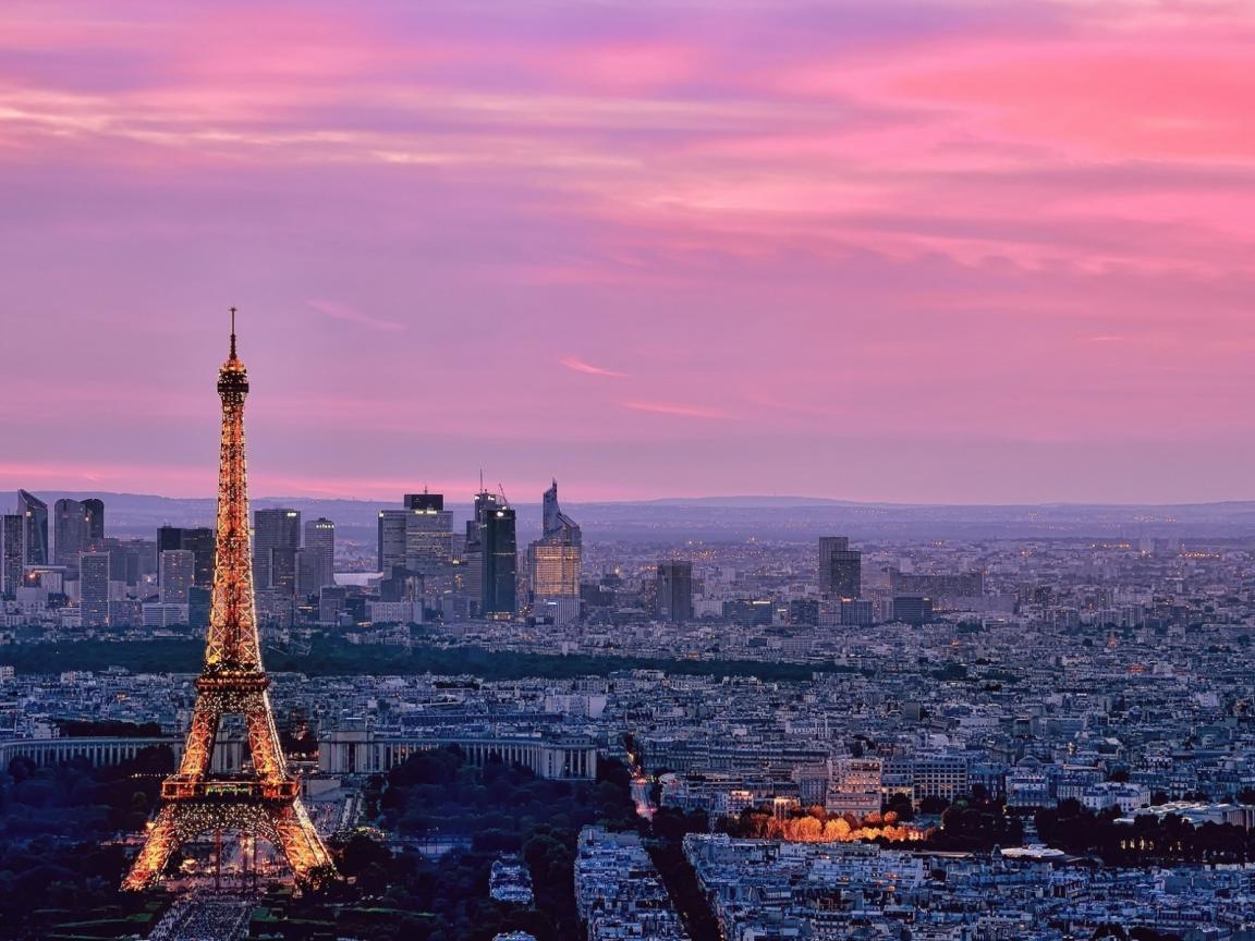 Обои Розовый закат в Париже, Франция