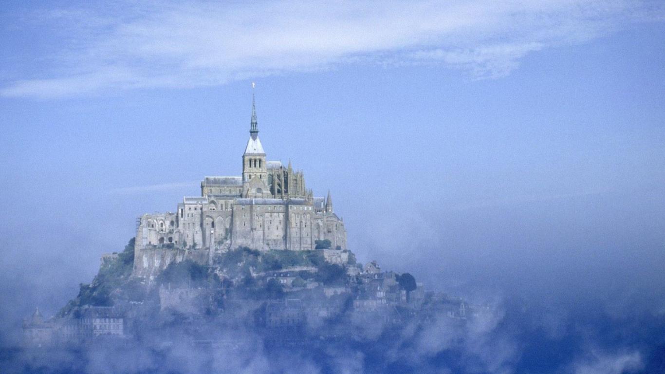 Обои Замок в тумане в Нормандии, Франция