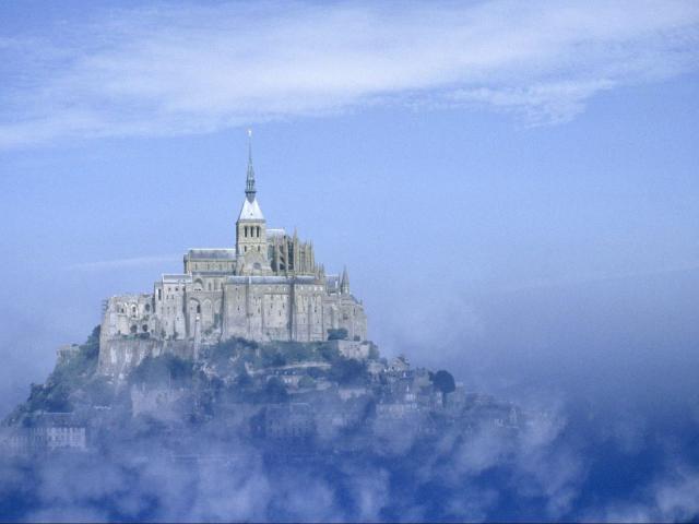 Обои Замок в тумане в Нормандии, Франция