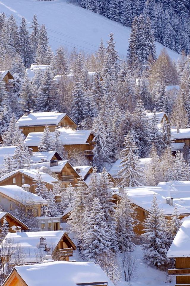 Обои Заснеженные дома на горнолыжном курорте Мерибель, Франция