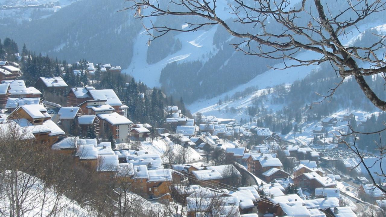Обои Дома на склоне на горнолыжном курорте Мерибель, Франция