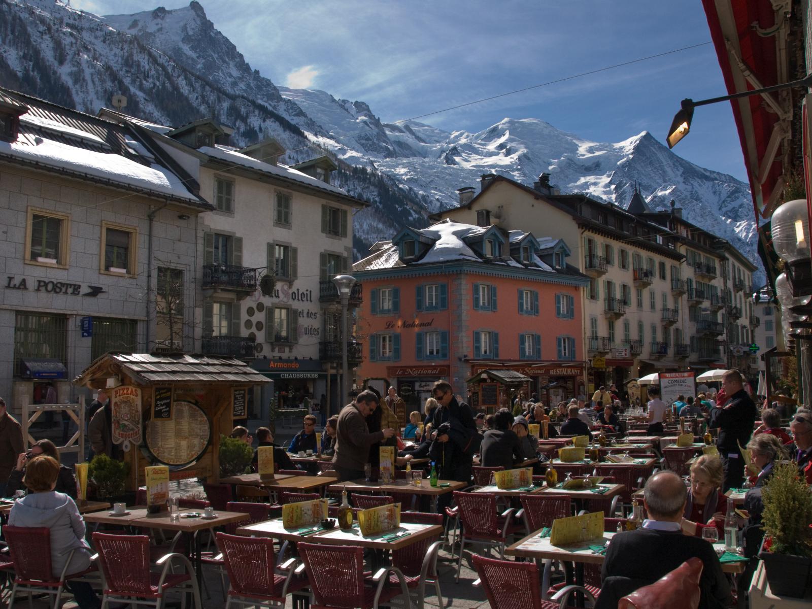 Обои Уличное кафе на горнолыжном курорте Межев, Франция