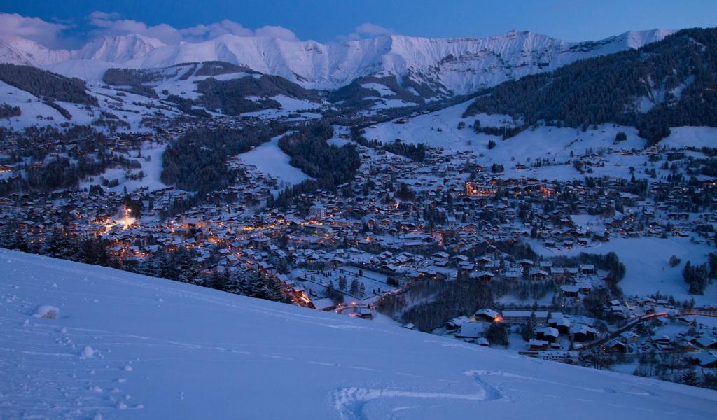 Обои Ночные огни на горнолыжном курорте Межев, Франция