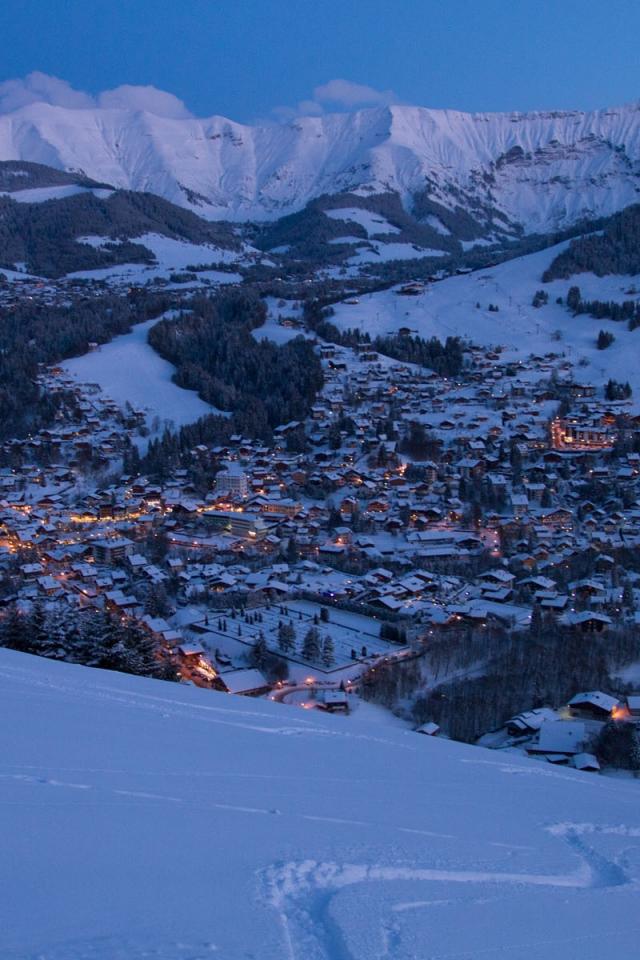 Обои Ночные огни на горнолыжном курорте Межев, Франция