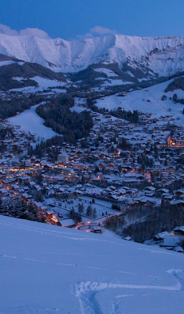 Обои Ночные огни на горнолыжном курорте Межев, Франция
