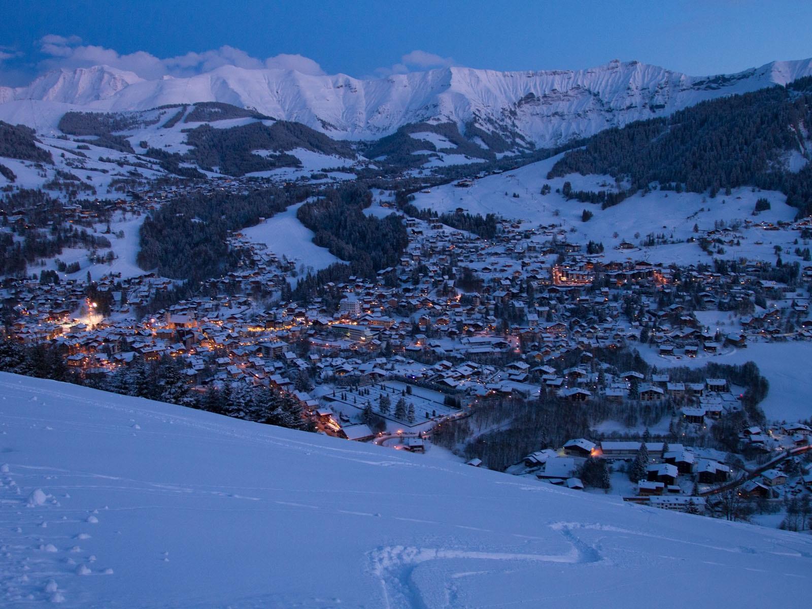 Обои Ночные огни на горнолыжном курорте Межев, Франция