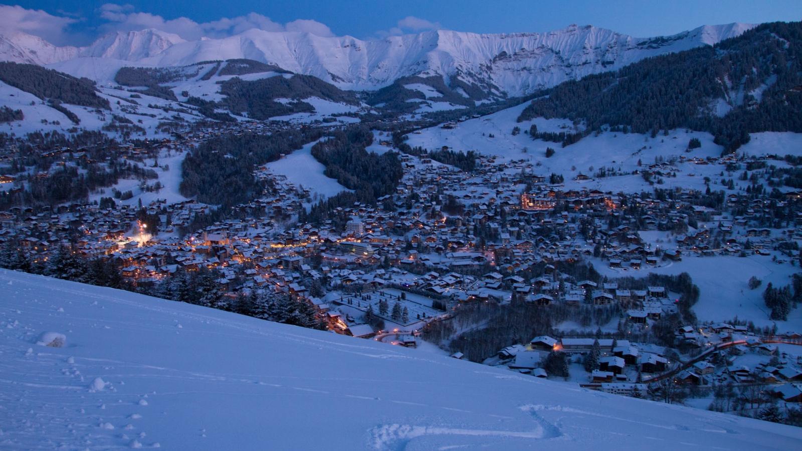 Обои Ночные огни на горнолыжном курорте Межев, Франция