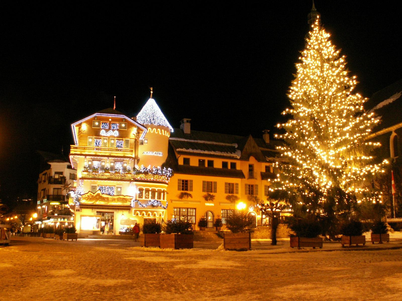 Обои Ночное сияние на горнолыжном курорте Межев, Франция