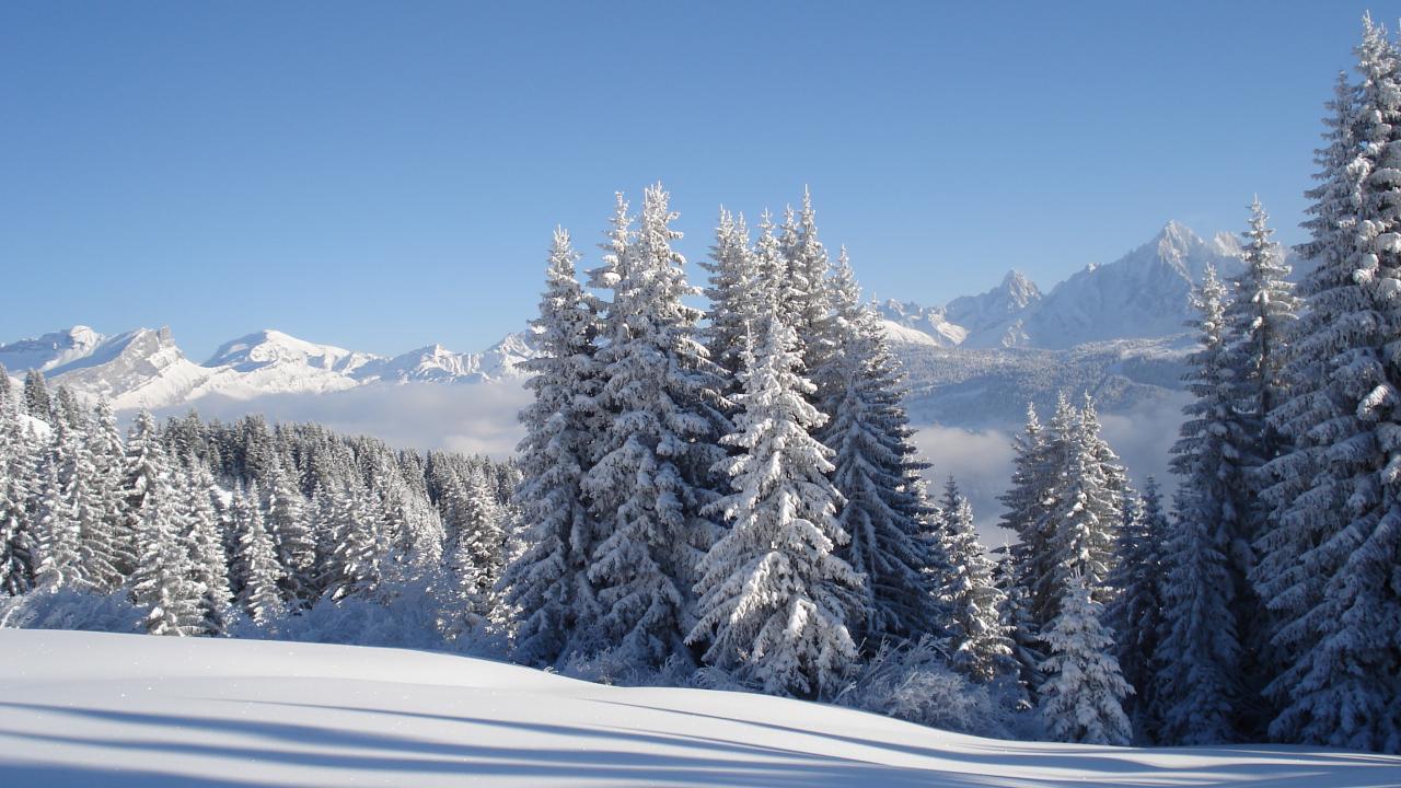 Обои Заснеженные ели на горнолыжном курорте Межев, Франция