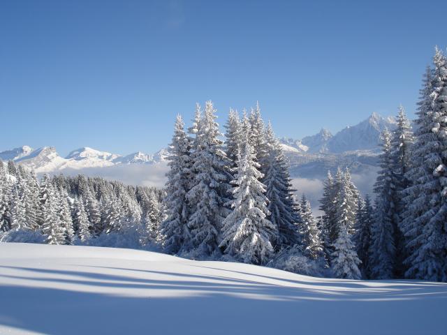 Обои Заснеженные ели на горнолыжном курорте Межев, Франция