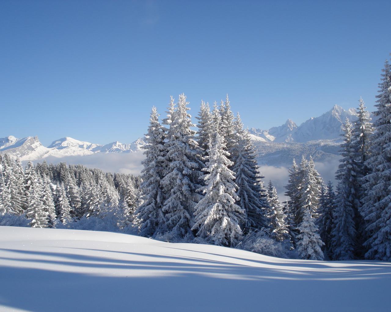 Обои Заснеженные ели на горнолыжном курорте Межев, Франция