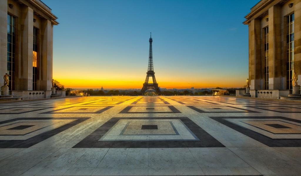Обои Городская площадь на фоне Эйфелевой башни