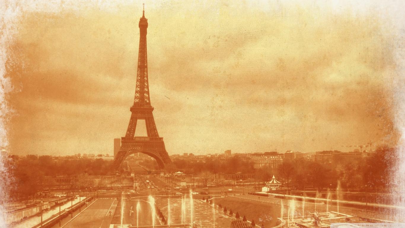 Обои Эйфелева башня, фотография сепия