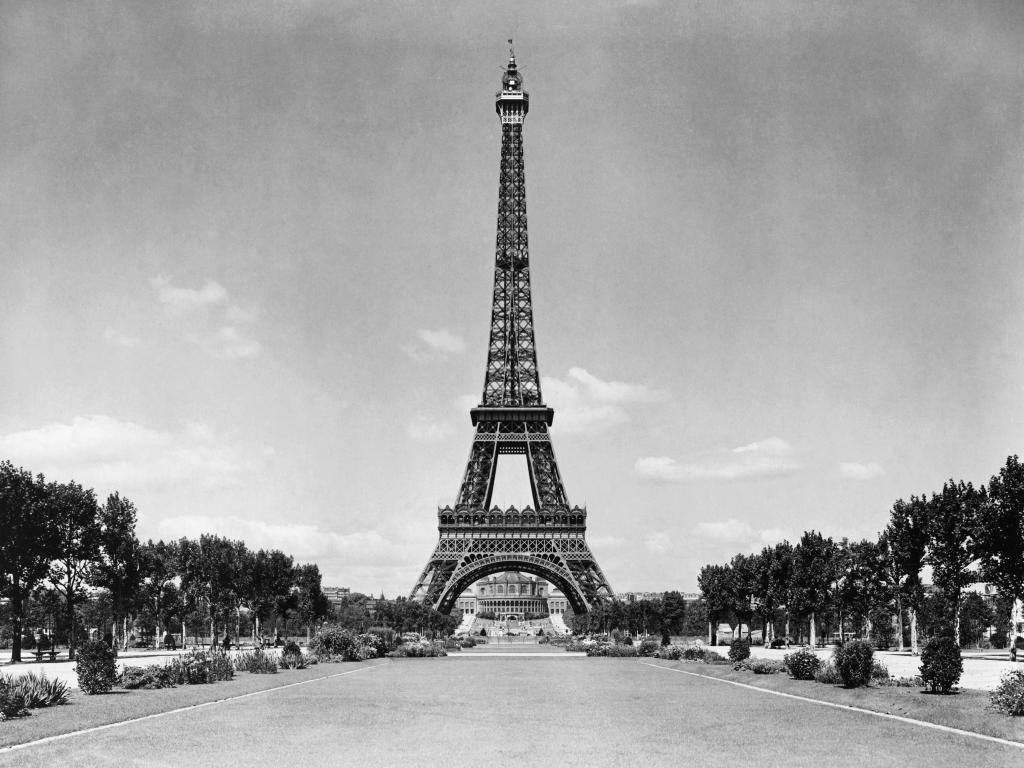 Обои Эйфелева башня и парк, чёрно-белое фото