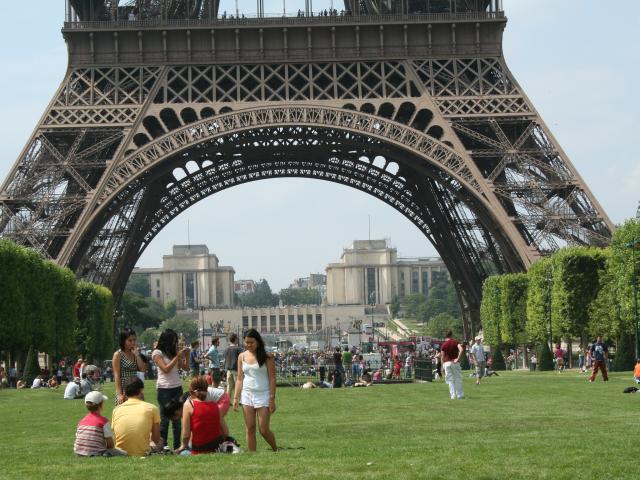 Обои Люди отдыхают возле Эйфелевой башни