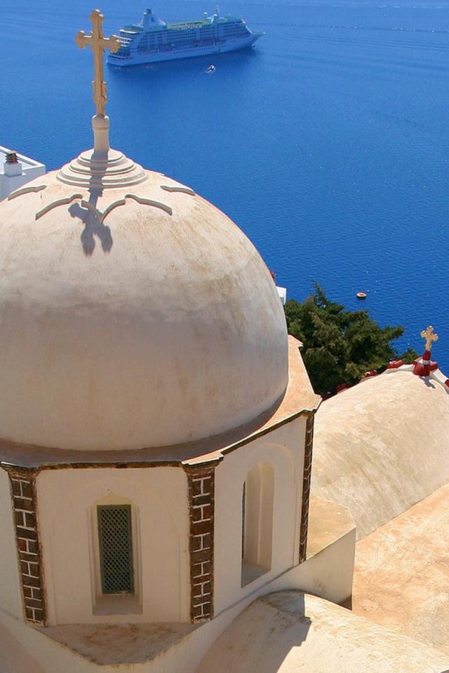 Обои Бассейн с видом на море, отель в Санторини Греция