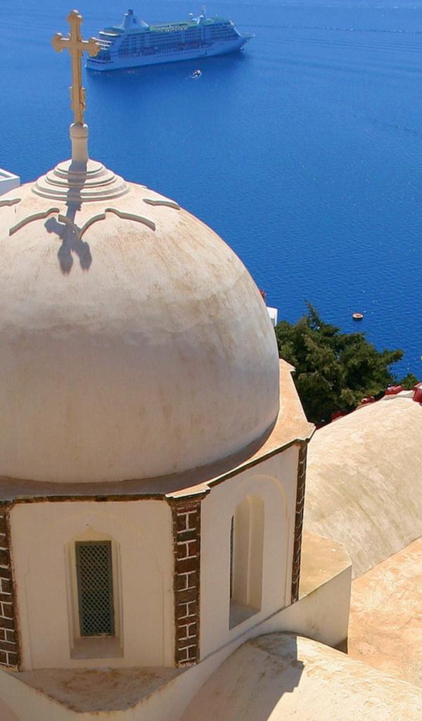Обои Бассейн с видом на море, отель в Санторини Греция