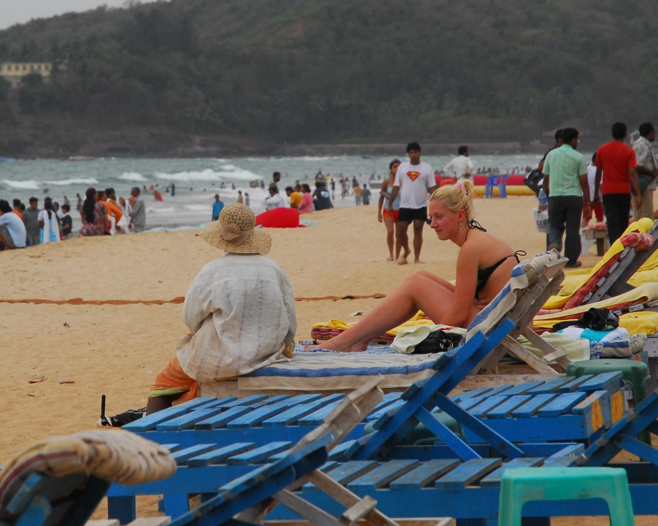 Обои Туристы на пляже в Гоа
