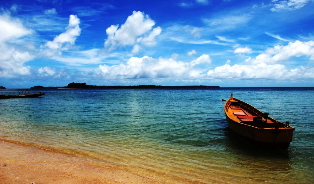 Обои Чудесные пляжи и лодка на Андамских островах