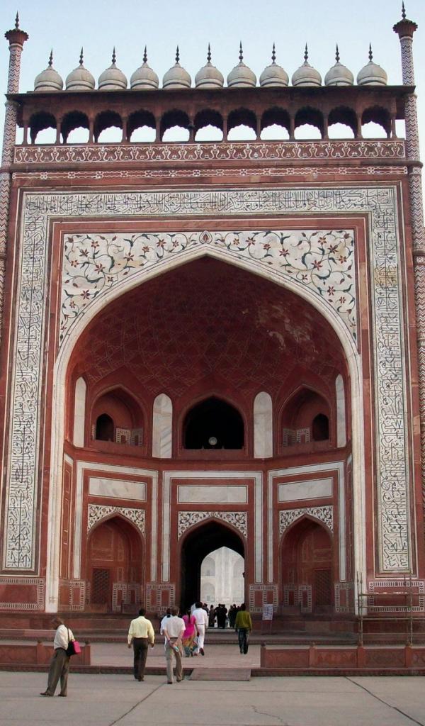 Обои Туристы на фоне мавзолея-мечети Тадж-Махал в Агре