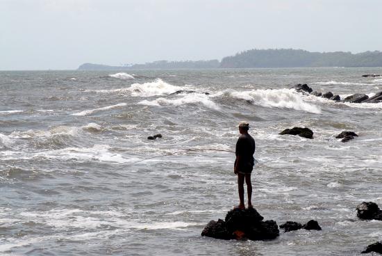 Обои Мужчина ловит рыбу в Гоа