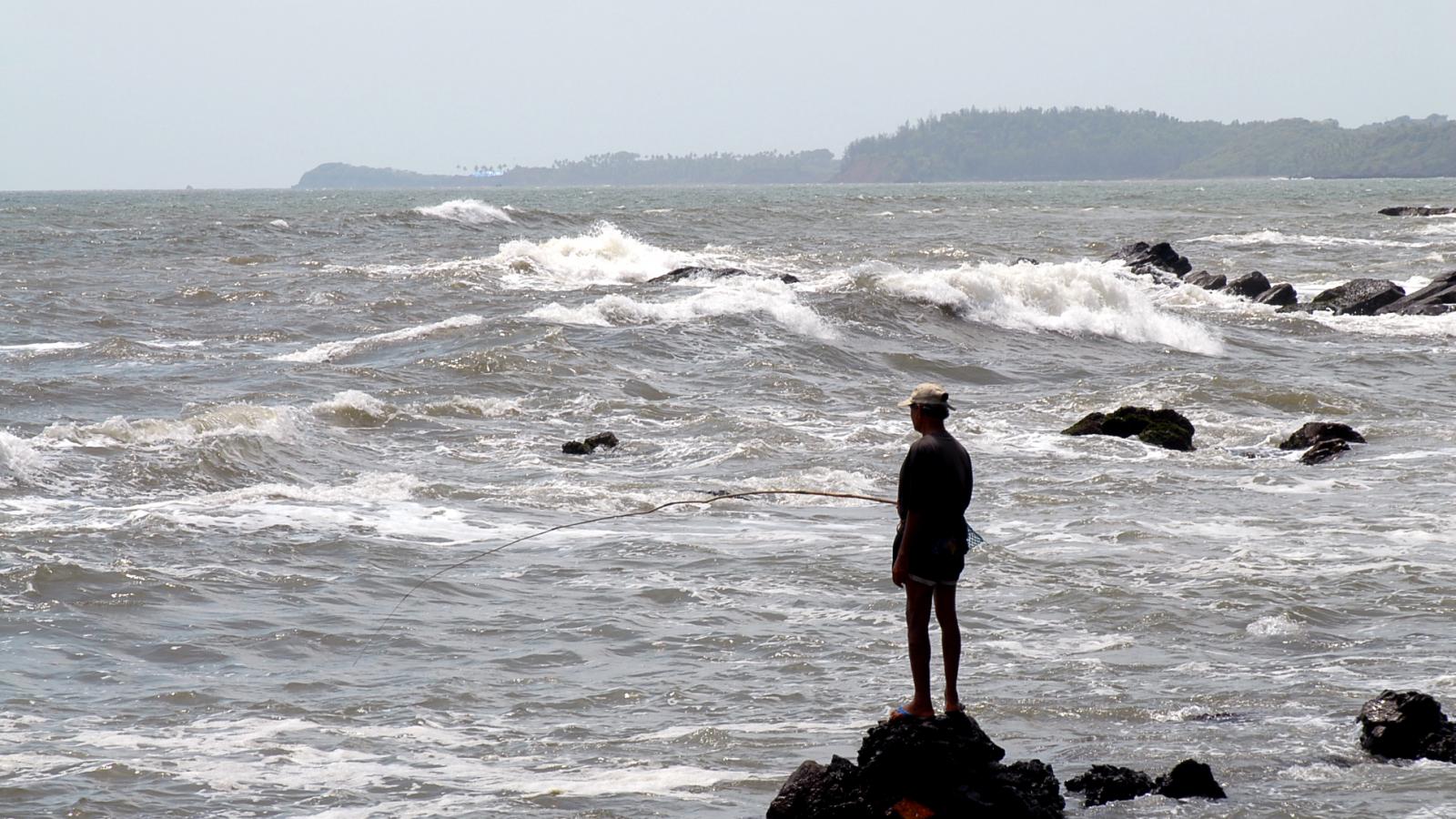 Обои Мужчина ловит рыбу в Гоа