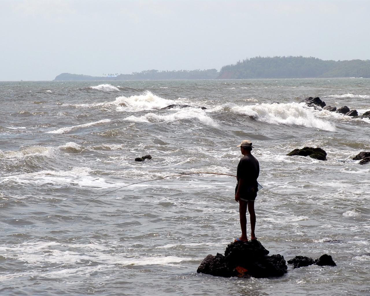 Обои Мужчина ловит рыбу в Гоа