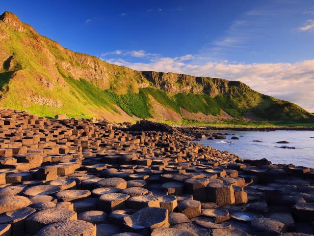 Обои Ступенчатые скалы на берегу в Ирландии