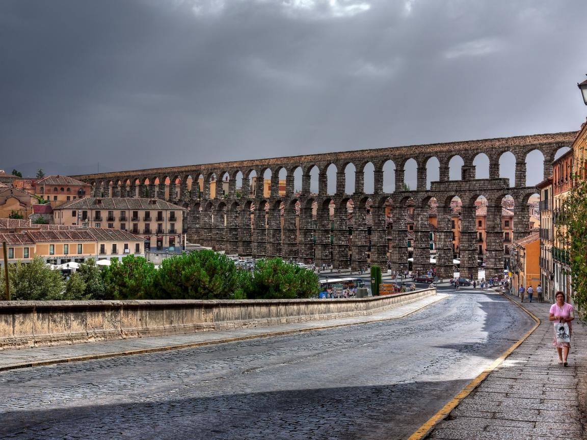 Обои Древнеримский акведук в городе в Италии
