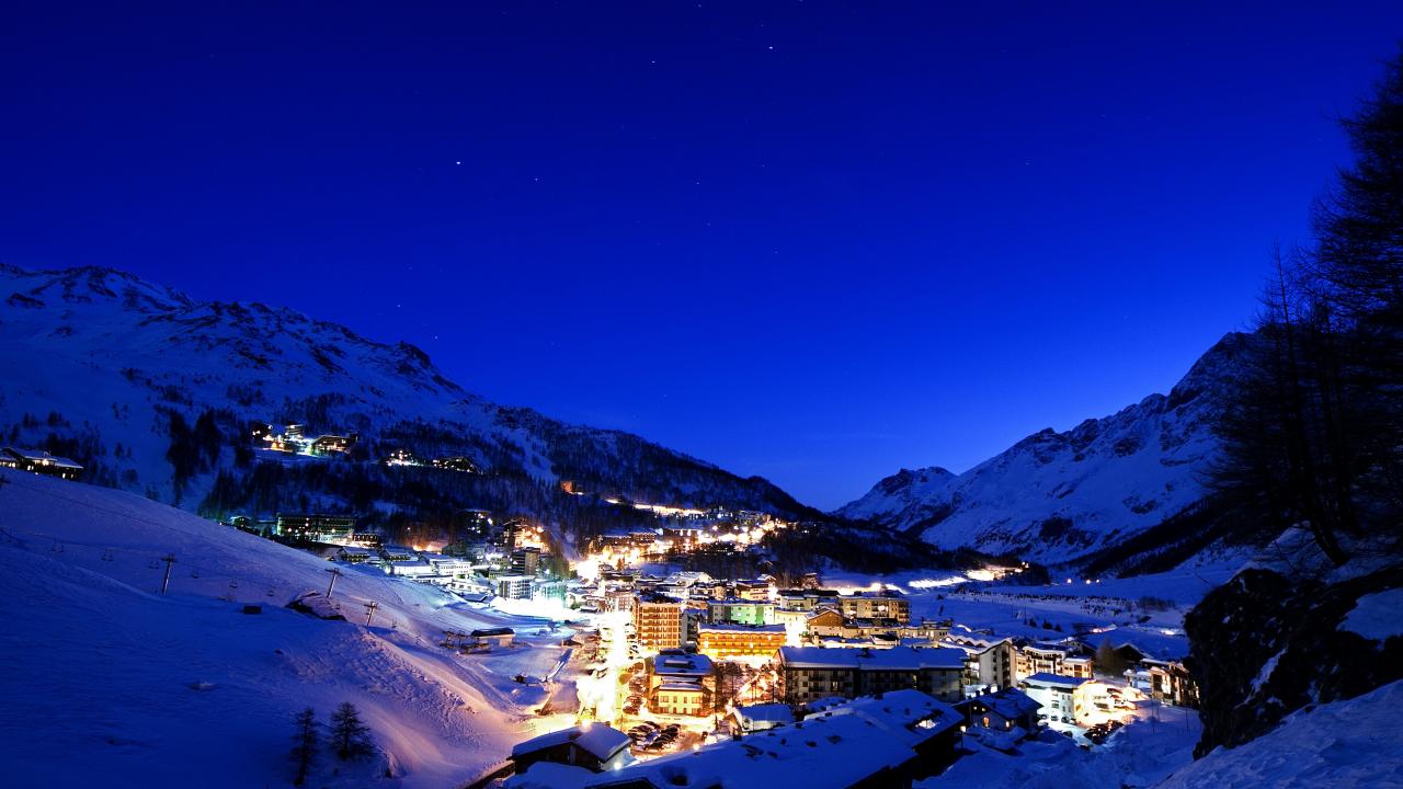 Обои Ночные огни на горнолыжном курорте Червиния, Италия