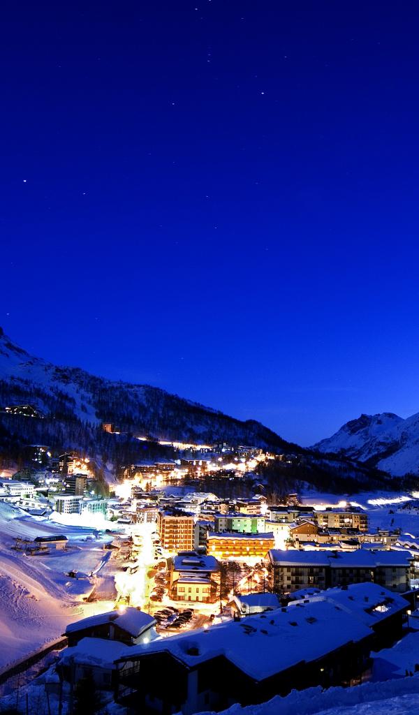 Обои Ночные огни на горнолыжном курорте Червиния, Италия