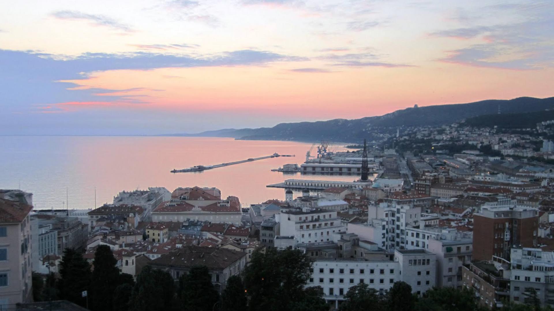 Обои Закат над городом на курорте в Триесте, Италия