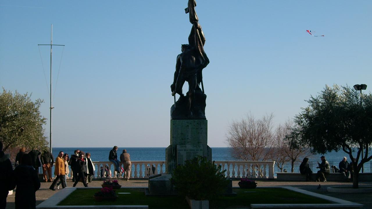 Обои Памятник на набережной на курорте Споторно, Италия