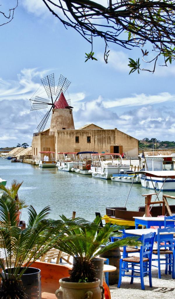 Обои Кафе на берегу моря на острове Сицилия, Италия