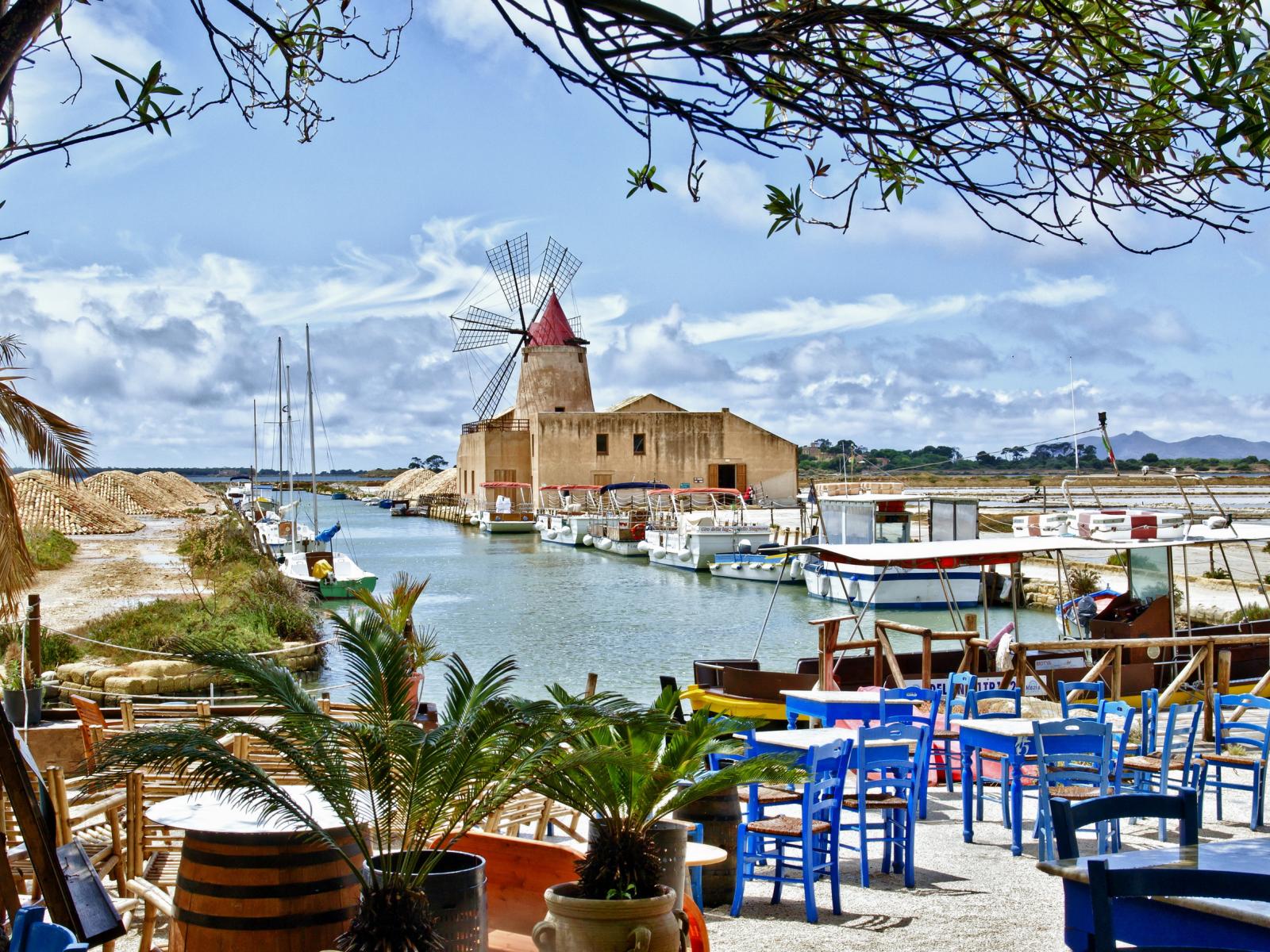 Обои Кафе на берегу моря на острове Сицилия, Италия