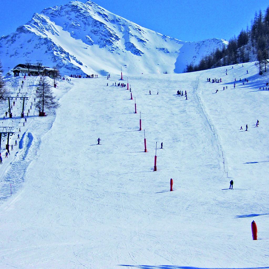 Обои Спуск на лыжах на горнолыжном курорте Сестриер, Италия