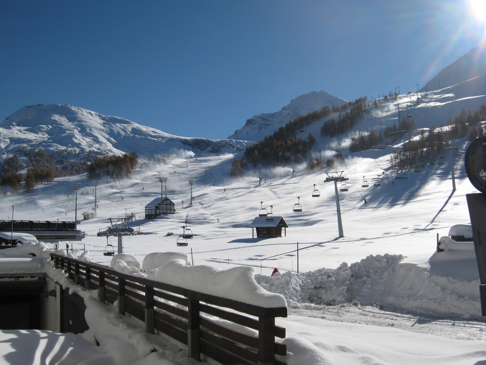 Обои Солнечное сияние на горнолыжном курорте Сестриер, Италия
