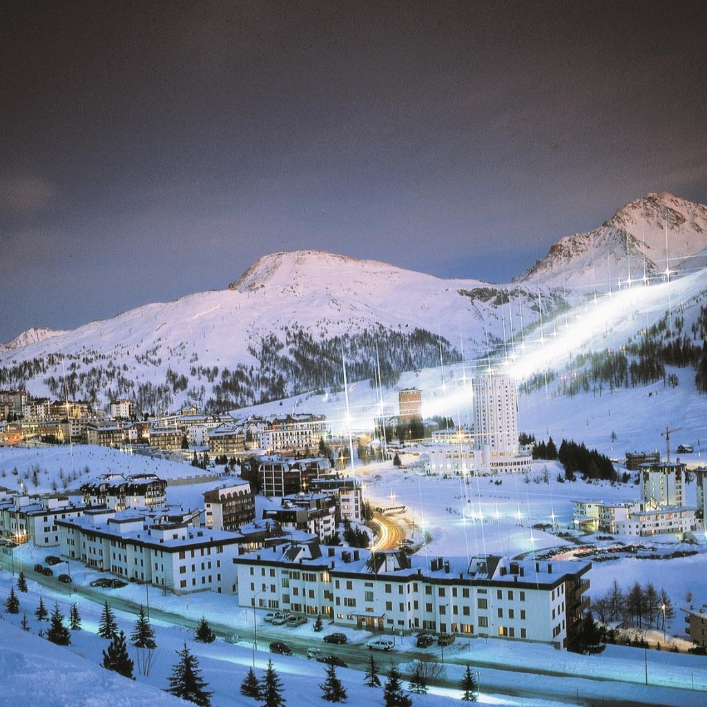 Обои Ночные огни на горнолыжном курорте Сестриер, Италия