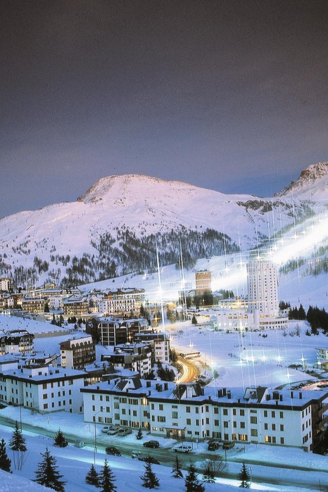 Обои Ночные огни на горнолыжном курорте Сестриер, Италия