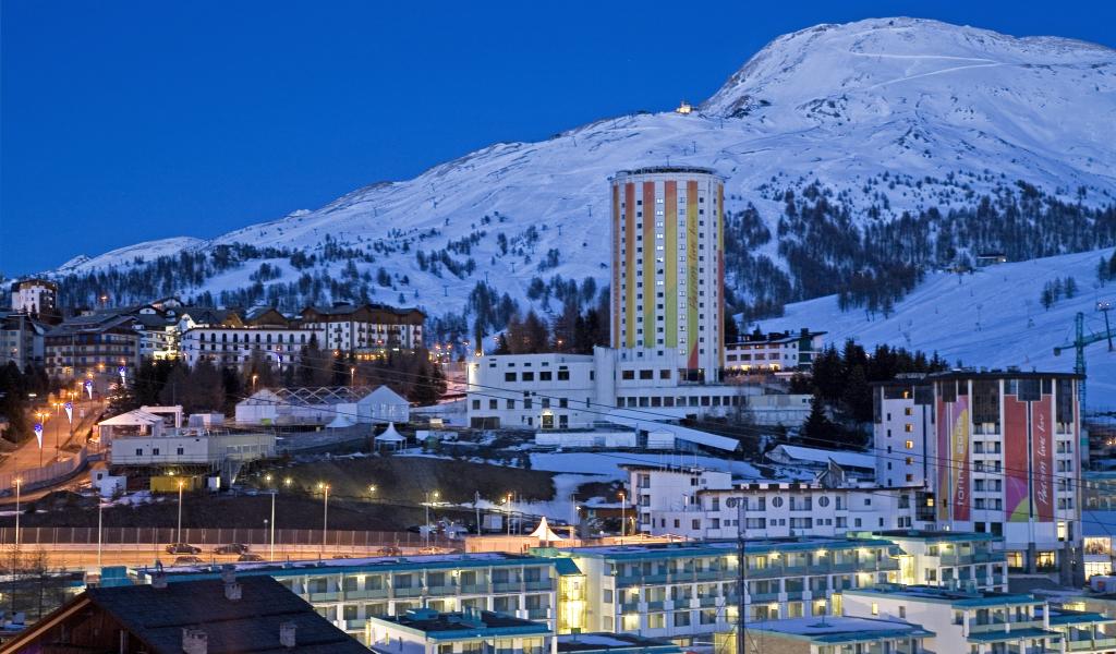Обои Вечернее сияние на горнолыжном курорте Сестриер, Италия