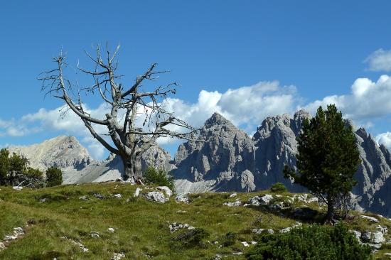 Обои Сухое дерево на горнолыжном курорте Сельва, Италия